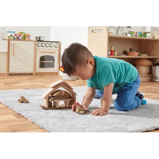 • Create different small world environments by stacking the pieces in creative ways and adding other toys.