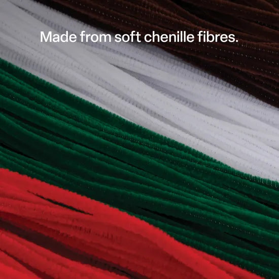 Add a festive flair to classroom craft activities with these Creatistics Christmas Pipe Cleaners. This generous pack includes 500 chenille stems in the perfect combination of Christmas colours-red, green, white and brown (125 of each). Measuring 30cm in length, these flexible pipe cleaners are ideal for creating a variety of holiday-themed decorations such as candy canes, reindeer, wreaths, stars, and Christmas trees. Their soft, bendable texture makes them safe and easy for children to manipulate, encouraging creative exploration while supporting classroom learning.