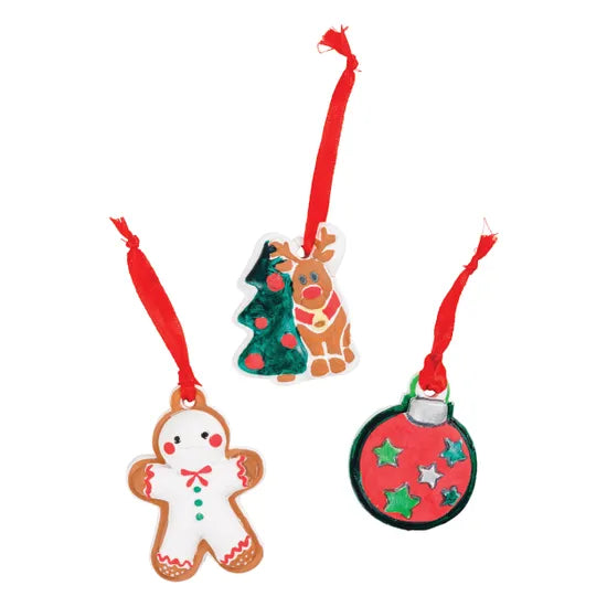 The Creatistics Plaster Character Set - Pack of 6 is a fun and festive way to encourage creativity and hands-on learning during the holiday season. Supplied plain and ready to decorate, this set includes 6 plaster decorations across 3 charming designs: gingerbread, star bauble, reindeer, and Christmas tree. Each decoration comes complete with a satin ribbon for hanging, making them ideal for classroom displays, Christmas trees, or take-home gifts. With an approximate size of 6cm (L) x 5cm (W), these compact ornaments are perfect for personalisation using paints, markers, glitter, or embellishments. This activity supports fine motor development while giving students the opportunity to create meaningful seasonal keepsakes.