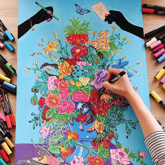 POSCA markers are water-soluble when wet, weather-resistant once dry, and contain odourless, non-toxic ink, ensuring safety for students of all ages. The unique valve system allows for controlled paint flow, and the re-saturatable tip ensures continuous, smooth strokes without skipping. These markers can be used confidently on materials such as paper, cardboard, metal, plastic, glass, textiles, ceramics, wood, and stone, offering limitless creative opportunities.