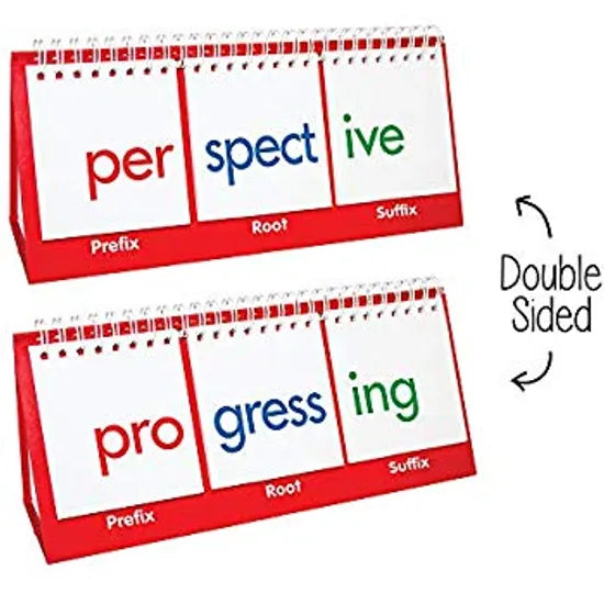 - Contents: Double-sided flip stand with colour-coded prefixes, root words and suffixes