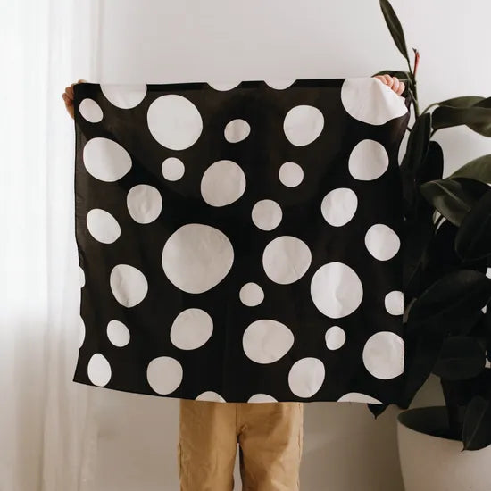 Stimulate your child's senses with the Play Silkies: Little Dots Silks - Set of 2, a striking duo crafted to captivate through both sight and touch. Designed with a bold black and white high-contrast motif, these silks are perfect for early sensory development, visual tracking, and imaginative play. Each set includes two beautifully balanced designs-one with crisp white dots on a deep black background, and the other with bold black dots on a white canvas.