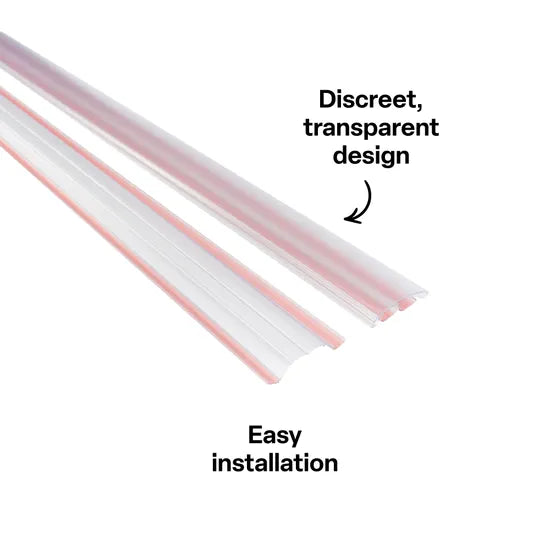 Perfect for childcare centers, preschools, schools, and homes, this durable and long-lasting finger pinch door protector is ideal for high-traffic areas. The Finger Alert Door Safety Strip, measuring 120 cm in length, is transparent and blends seamlessly with various door types. It can be easily installed using tape or screws, offering effective child safety without compromising the door's appearance.