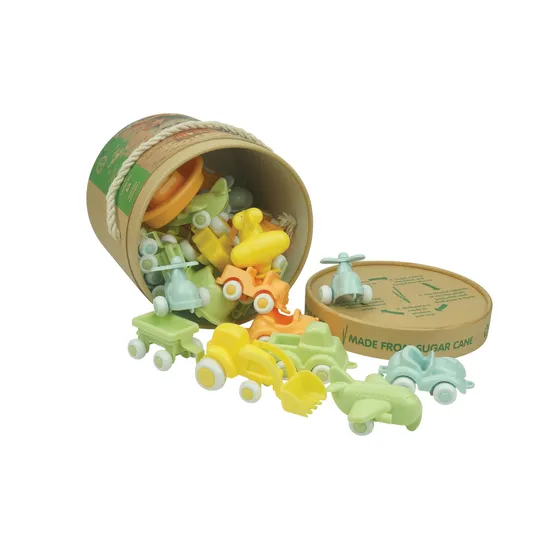 These high-quality toys are made from a renewable sugarcane plastic. Ecoline toys are made from sugarcane that is then processed and manufactured into an eco-friendly plastic. The sugar cane is a sustainable plant that helps reduce carbon emissions by binding and absorbing surrounding CO2 emissions. During this process the sugarcane absorbs more CO2 then what is takes to manufacture the Ecoline toys. Which overall makes their environmental footprint a positive one. This process also makes these toys 100% recyclable.