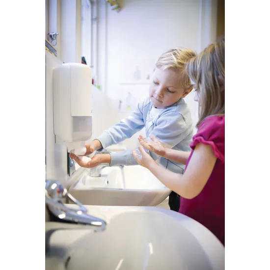 The Tork liquid soap dispenser is designed for all types of washrooms, ensuring a hygienic and efficient handwashing experience. Certified by the Swedish Rheumatism Association, it is proven to be easy to use, making it suitable for children, the elderly, and individuals with limited hand mobility. Its intuitive refilling system saves time, making it a reliable choice for busy environments such as early childhood centres, schools, and offices.: