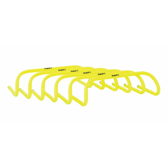 Sharpen your coordination, lateral movement and foot speed with the HART Step Hurdle Micro 15 cm Set of 6. Available in 3 heights - Micro (15 cm), Mini (30 cm) and Macro (45 cm)-these hurdles are designed to accommodate various skill levels and training needs. The curved design ensures safety by tipping forward when knocked, minimising injury risks. Their fluorescent colour ensures high visibility, making them ideal for late-night or low-light training sessions. Made from durable lightweight PVC, these hurdles come in a set of 6 and include a mesh carry bag for easy transport and storage.