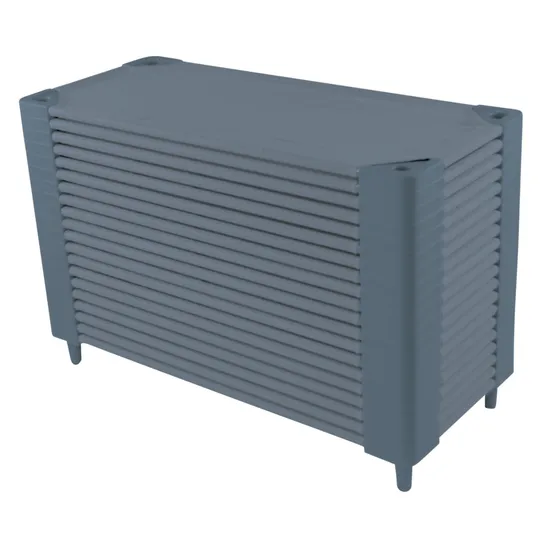 The MTA Spaces Compact Slimline Stacking Bed in Grey is a durable and space-saving sleeping solution ideal for early learning environments. Measuring 101.5cm in length and 58.5cm in width, this compact bed features a robust plastic frame with a strong, lightweight metal structure and a mesh bed that provides firm support for resting children. Its slimline design allows multiple beds to be stacked compactly, optimising storage space. Simple assembly is required. Suitable for children aged 3 years and up.