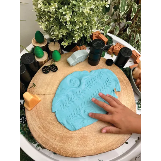 Each roller features detailed imprints that represent both a vehicle and its unique track or tread, encouraging children to consider how different vehicles move and where they might travel. From pedestrian footprints to airplane contrails, children can use these tools to map imaginary journeys, count tracks, and discuss destinations, making them a rich resource for both creative and educational play.