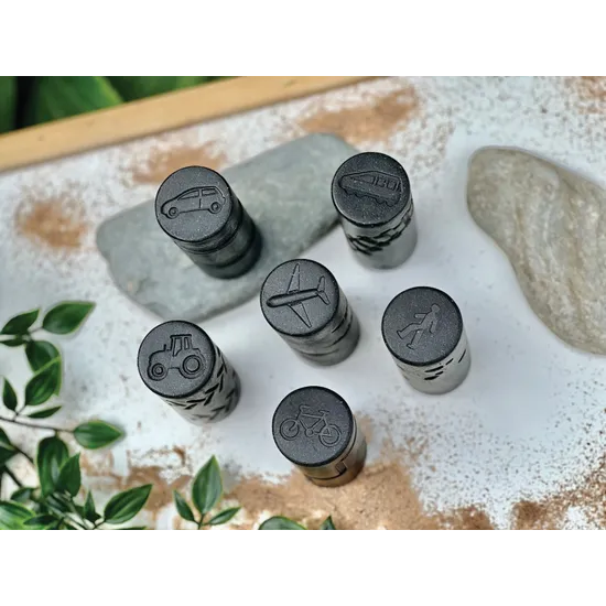 The Transport Rollers - Set of 6 provide an exciting, hands-on way for children to explore different modes of urban and rural transport through sensory play. Crafted from a durable stone mix, each roller features a combination of vehicle shapes and track or tread textures that spark imagination, storytelling, and early STEM learning. Ideal for use with clay, dough, or sand, these rollers inspire children to create engaging transport-themed scenes while also developing key fine motor and language skills.