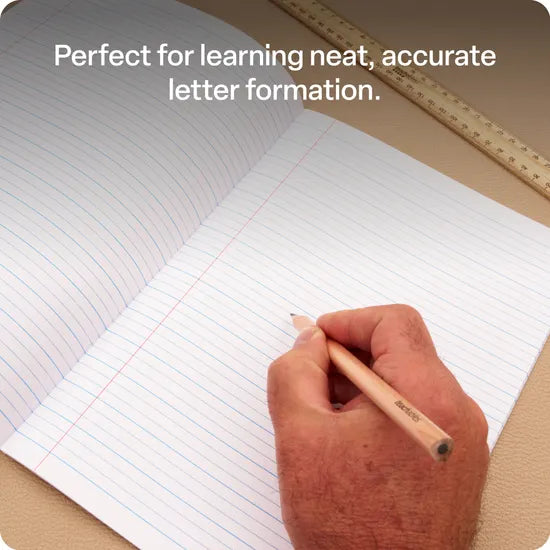 These premium Writer Dotted Thirds A4 exercise books are ideal for students learning letter formation and handwriting skills. Featuring an 18 mm dotted thirds ruling with red margins, they provide a structured guide to enhance writing accuracy and confidence. The high-quality 70gsm paper ensures smooth writing, while the durable cardboard cover offers long-lasting protection.