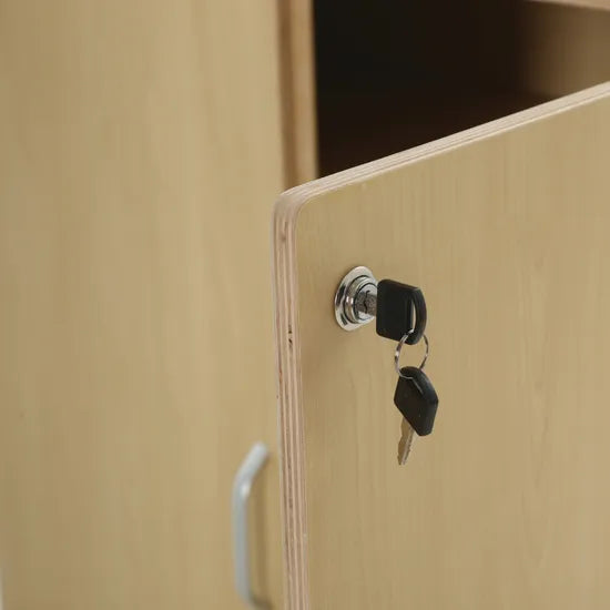 The Natural Spaces Lockable Storage unit features a durable design with lockable doors and three internal shelves. With adjustable top and bottom shelves, it offers versatile storage options for classrooms and offices. Supplied with two keys, it ensures secure storage of resources and equipment.