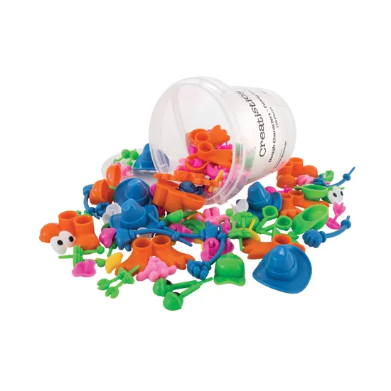 Bring imagination to life with the Creatistics Dough Characters Funny Faces - Pack of 130, a fun and engaging resource designed to enhance creative play in early years settings. This versatile bucket of assorted character pieces allows children to invent their own dough creatures by mixing and matching a wide variety of expressive parts. With approximately 130 pieces included, such as hats, feet, shoes, hands, arms, claws, lips, ears, eyes, and mouths, students have all they need to build endless combinations of imaginative faces and bodies. The blue hat measures 5 cm across and the purple arm is 6.5 cm long, giving children manageable, easy-to-handle parts for fine motor skill development. All pieces are stored in a handy plastic bucket for convenient clean-up and classroom organisation. Please note that illustrated dough is not included. Suitable for ages 3+ years and exclusive to MTA, this set offers a hands-on way for young learners to explore character creation, emotional expression, and storytelling through play.