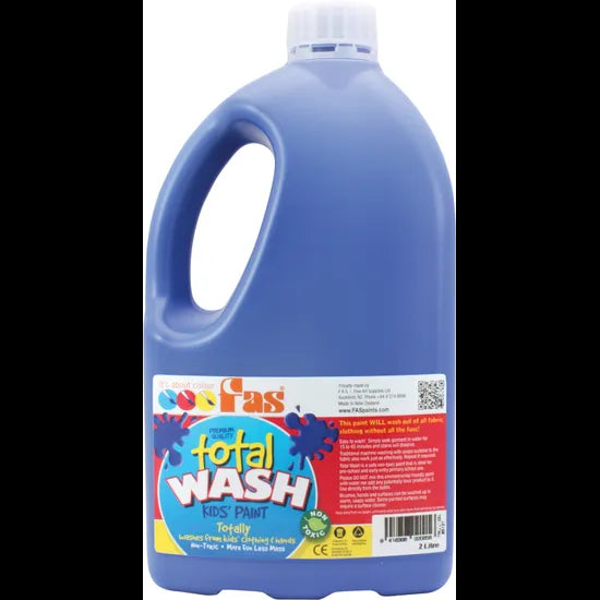 FAS Total Wash Paint Warm Blue 2L is a premium-quality, non-toxic, and environmentally friendly wash-off poster paint, ideal for both classroom and home settings. Specially developed for preschool and early primary students, this warm-toned blue paint offers bold, vibrant colour straight from the bottle with no need for dilution or shaking. The ready-to-use formula ensures a smooth and consistent application, and it maintains its brilliance on paper and a range of surfaces. Cleanup is hassle-free-simply soak garments in water for 10-45 minutes to dissolve paint stains, or place them in a washing machine for effortless results. Brushes, hands, and most surfaces clean easily with warm, soapy water, although some surfaces may need a surface cleaner. Supplied in a generous 2-litre recyclable bottle, this paint is exclusive to MTA and made in New Zealand, providing a trusted solution for vibrant classroom artwork.
