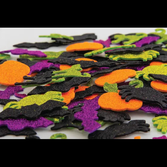 Add a vibrant and spooky touch to your Halloween crafts with the Creatistics Halloween Stickers. This generous pack of 300 includes a festive assortment of glittery stickers in classic Halloween colours of orange, black, purple and green, perfect for seasonal craft activities and decorating projects. Featuring a variety of iconic Halloween characters-such as pumpkins, cats, spiders and bats-these stickers are sure to spark creativity in children and inspire countless decorative ideas. Made from high-quality materials, each sticker features a durable adhesive backing for secure placement on most surfaces, including paper, cardboard and gift wrap. Their peel-and-stick design makes them simple and fun to use, even for younger children, and ideal for personalising treat bags, scrapbooks, greeting cards, party décor or classroom art. Whether used individually or layered to create a spooky scene, these stickers bring colour, texture and fun to every Halloween-themed activity.