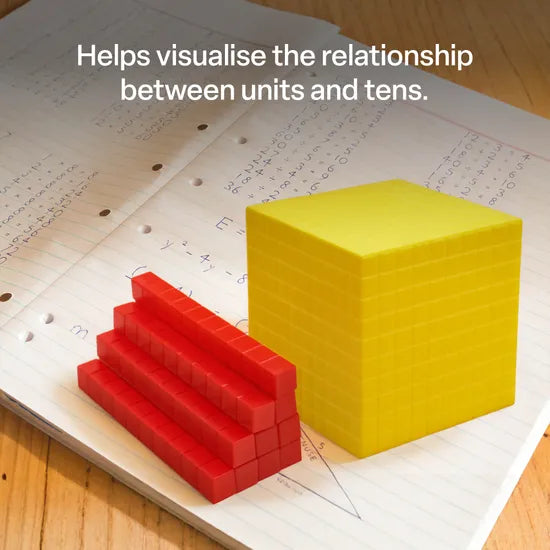 - Helps students visualise the concept of place value by showing the relationship between units and tens.