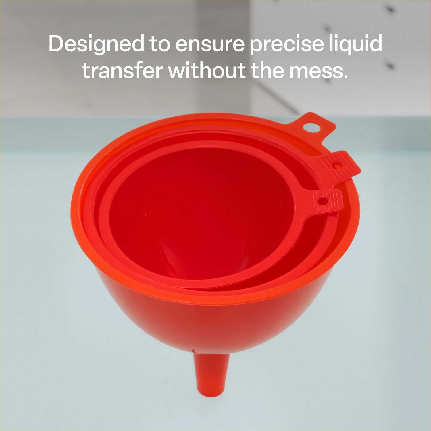Transfer liquids and measure volumes effortlessly with this trio of funnels in small, medium, and large sizes. Perfect for science experiments, kitchen activities, or sensory play, these funnels ensure precision without the mess.