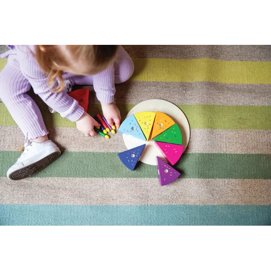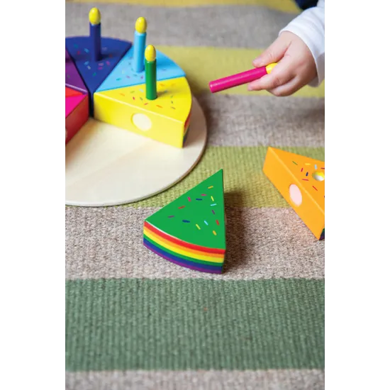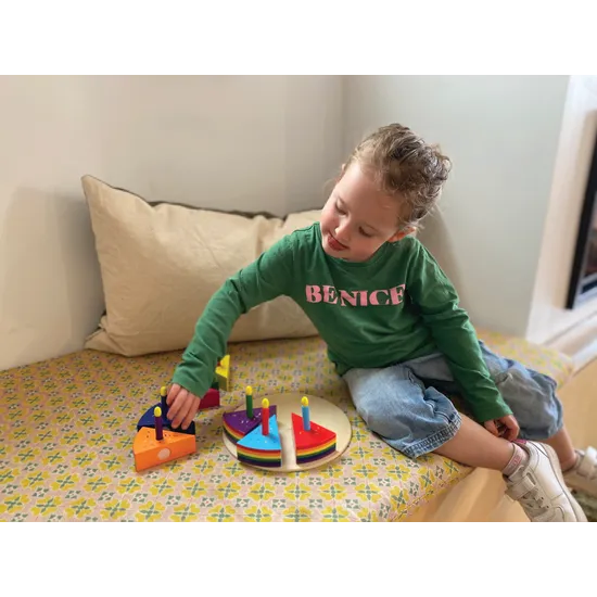 The Let's Celebrate! Birthday Cake set is perfect for pretend play, allowing children to create their own birthday celebrations or tea parties. With 8 brightly coloured wooden cake slices and removable candles, this toy sparks creativity and social interaction as children decorate their cake and celebrate special moments. Ideal for helping children develop social skills and imagination, the cake is made from FSC certified New Zealand Pine, ensuring quality and sustainability. Whether it's for a birthday or a fun afternoon snack, this delightful set will provide hours of entertainment.