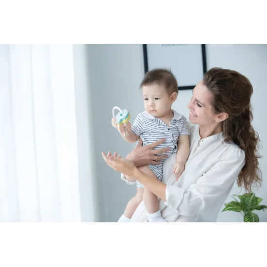 - Encourage babies to shake the rattle and listen to the sound as they explore cause and effect.