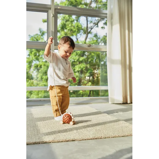 The PlanToys Pull-Along Hedgehog is a delightful and interactive toy designed to accompany little ones on their adventures. When pulled along, this charming hedgehog emits a soft chime, providing both auditory stimulation and a fun way to track its movement. The adorable hedgehog helps children develop their gross motor skills, balance, and coordination as they practice walking and pulling their new friend. Made with high-quality, eco-friendly materials, this pull-along toy is a great addition to any child's collection, encouraging both physical and sensory development.