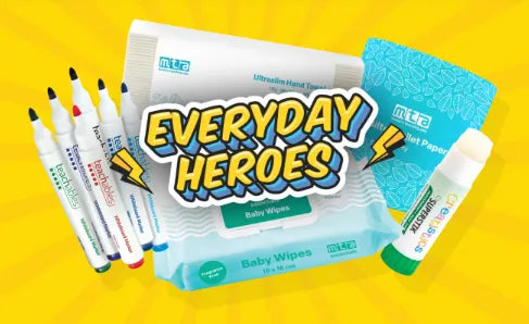 You’ll find Everyday Heroes across our Health & Hygiene, Stationery and Art & Craft ranges. They’ve been chosen because they get the job done brilliantly every day and turn educators into heroes too.