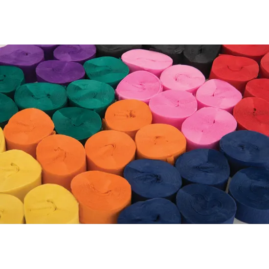 These vibrant assorted crepe streamers are perfect for a wide range of craft projects, classroom decorations, and creative displays. Supplied in an assortment of bright colours, these streamers can be twisted, curled, or layered to create dynamic and eye-catching effects. Their lightweight, flexible texture makes them easy to handle and cut, providing endless possibilities for students and educators alike. Ideal for art projects, themed displays, or festive occasions, these streamers add an extra layer of colour and excitement to any creative endeavour. Each streamer measures 20mm wide and 9.5 metres long. Colours may vary slightly.