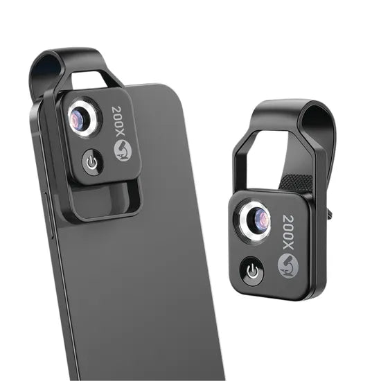 Students can clip these easy-to-use lenses onto their mobile device, slide the microscope lens to sit directly over the camera lens, and then simply open the camera on their device and use the zoom function to get up to 200x magnification with this lens.