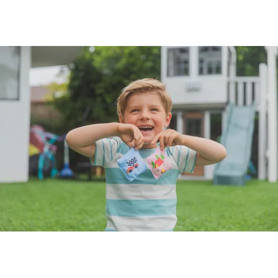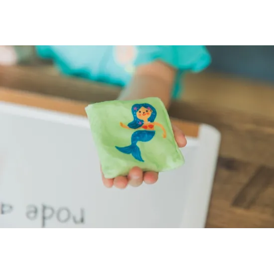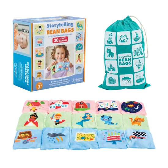 The Storytelling Bean Bags are designed to help children aged 3+ develop their storytelling, vocabulary, and critical thinking skills. This set includes 15 colour-coded, double-sided bean bags featuring 30 story elements: 10 characters, 10 places, and 10 events. Children can toss, catch, and arrange the bean bags to create their own stories, promoting creativity and imagination. The hands-on, tactile nature of these bean bags makes them ideal for engaging young learners in both individual and group activities. With an activity guide for parents and educators, children will be encouraged to think critically about how characters interact with places and events, while improving their narrative skills and language development.